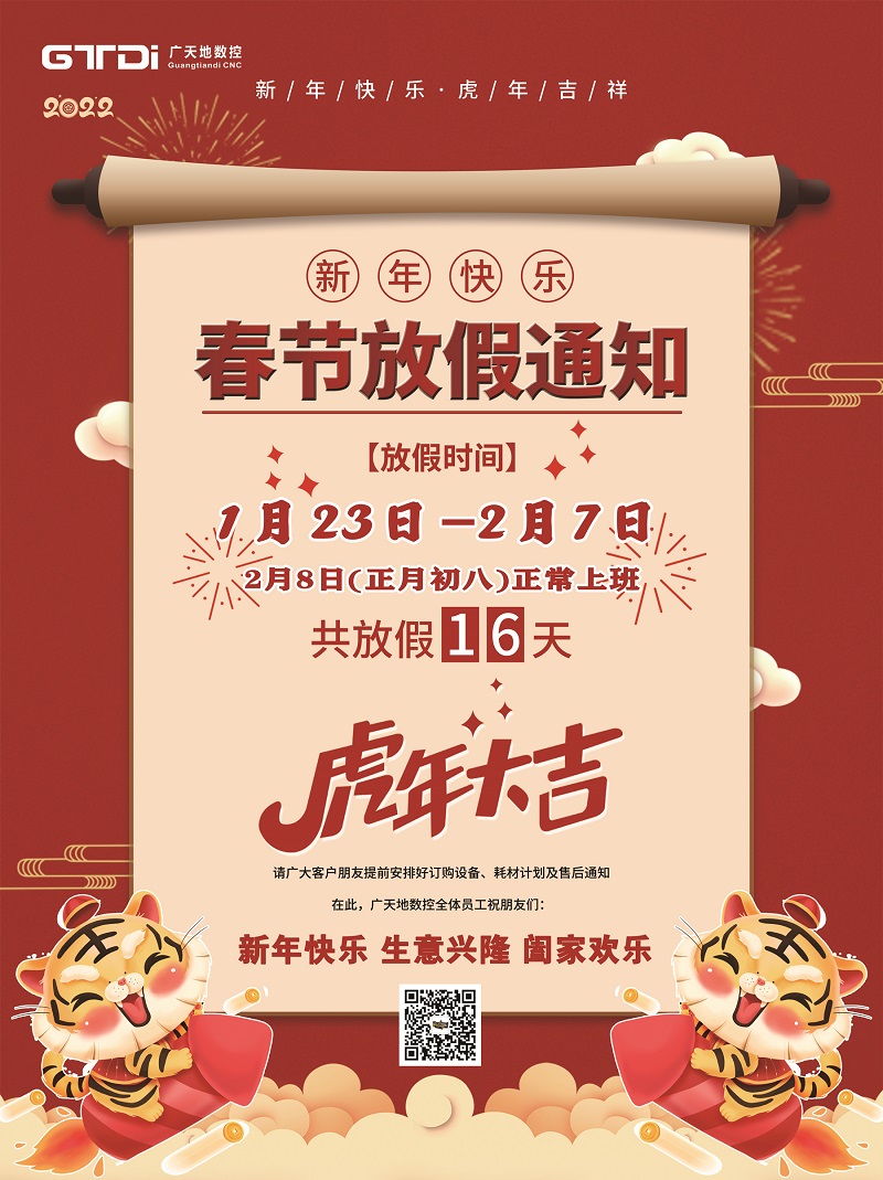 2022年春节将至,首先感谢您在2021年里的鼎力支持和愉快合作,永利304数控全体同仁在此给您拜个早年。在新年的一年里,永利304将更加努力,为您提供更优质的服务。按照国家春节放假规定结合我司的具体情况,春节放假时间安排如下: